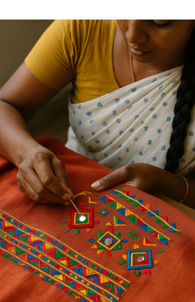 Welcome to Lambani.in — a home for authentic Lambani hand embroidery. Our women artisans, each with over 15+ years of experience, handcraft every saree, kurta, dupatta, and blouse piece with precision, love, and heritage.